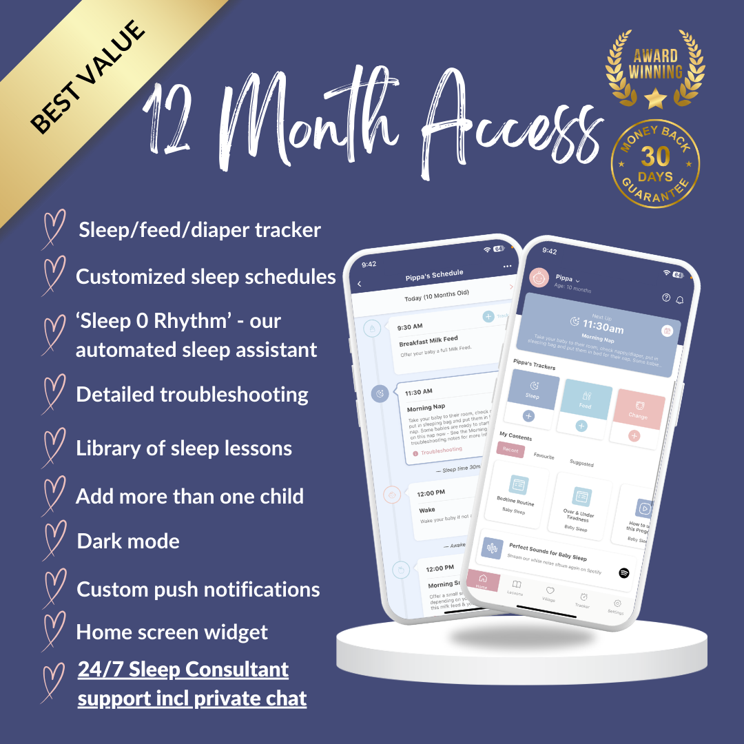 Certified Sleep Consultant Support: Need personalized advice? Our team of Certified Sleep Consultants is available via private chat to assist you day and night, as an easy add-on for the 3 month access, or included in the 12 and 24 month access.